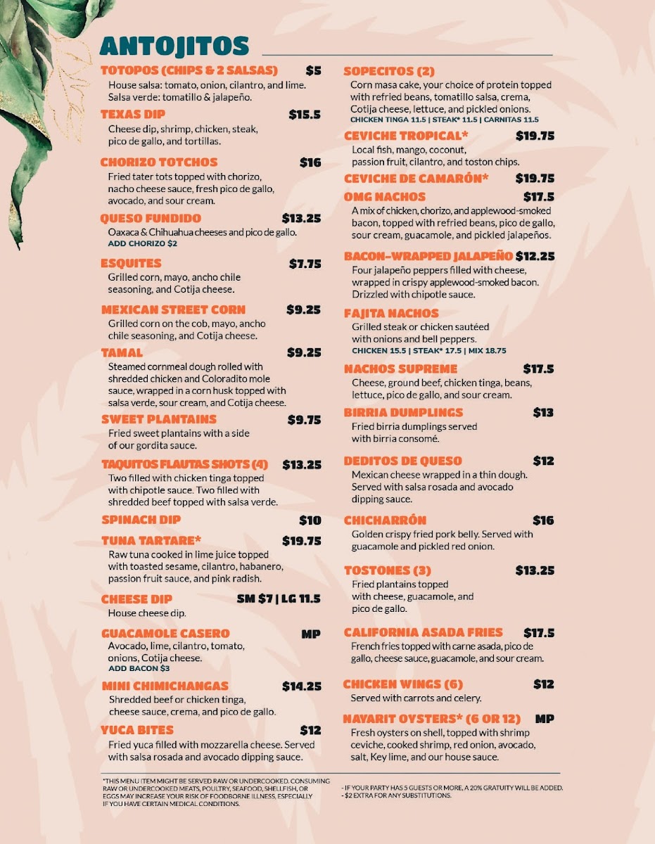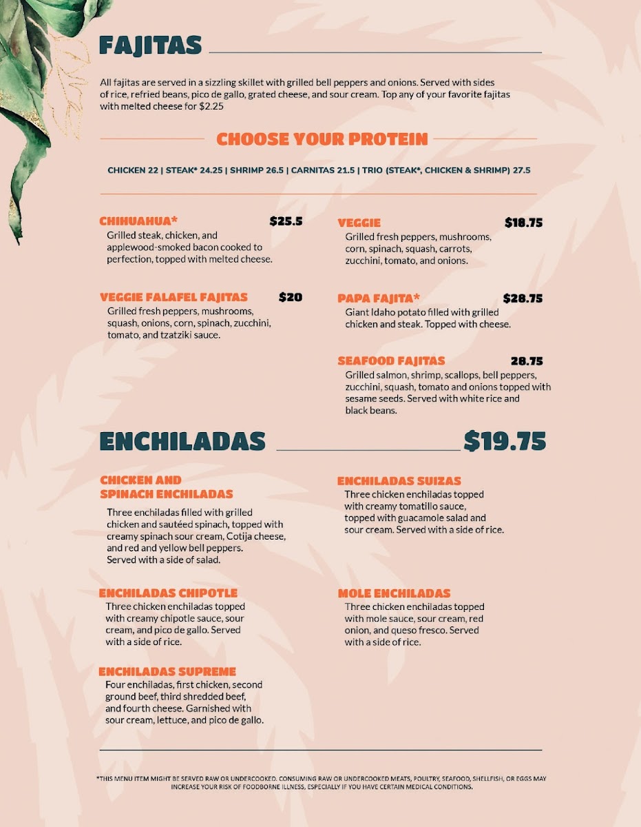 Of course, tequila lovers will feel right at home. The lineup behind the bar pairs perfectly with everything from sizzling fajitas to street-style corn, and the cocktail list adds its own spark with refreshing margaritas and inventive mixes. Whether you’re in the mood for something hearty and satisfying or light and shareable for the table, the menu feels thoughtfully put together without being fussy. It’s the kind of place where you can settle in, explore a little, and find a new favorite dish every time you visit.